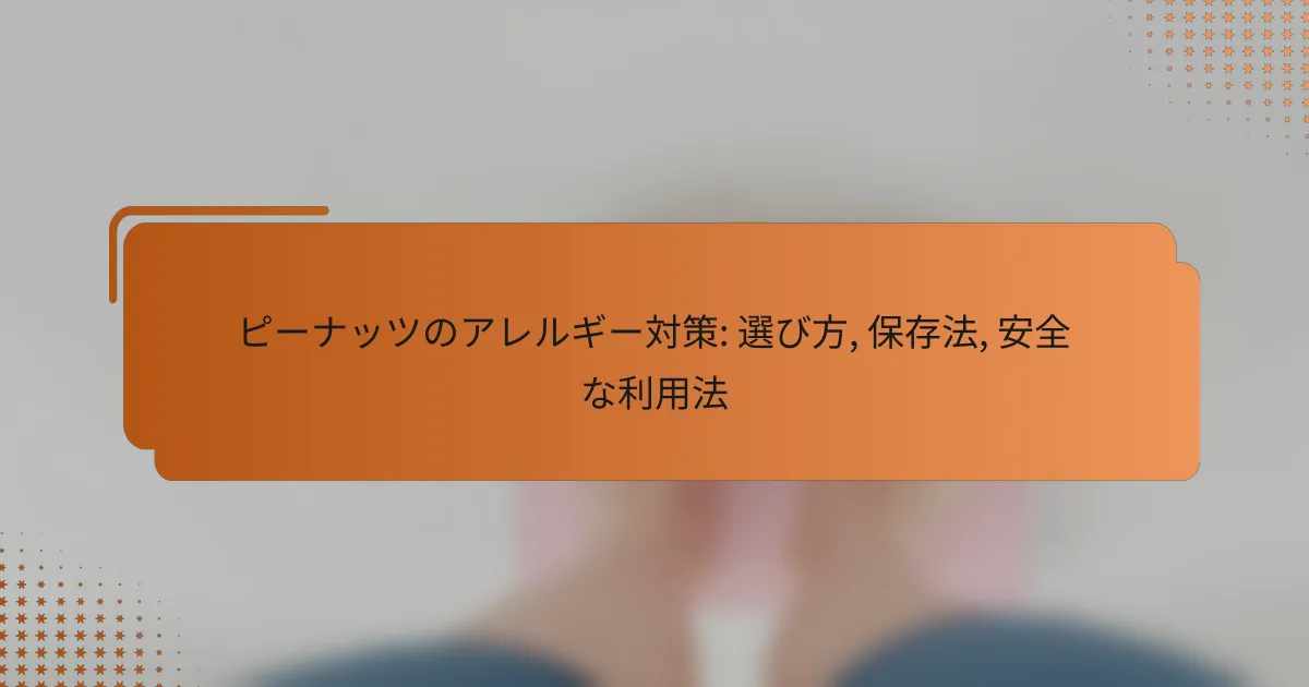 ピーナッツアレルギー対策には、安全な製品の選定や保存法、利用法が重要です。アレルギーのリスクを軽減するために、適切な製品を選ぶことが基本になります。