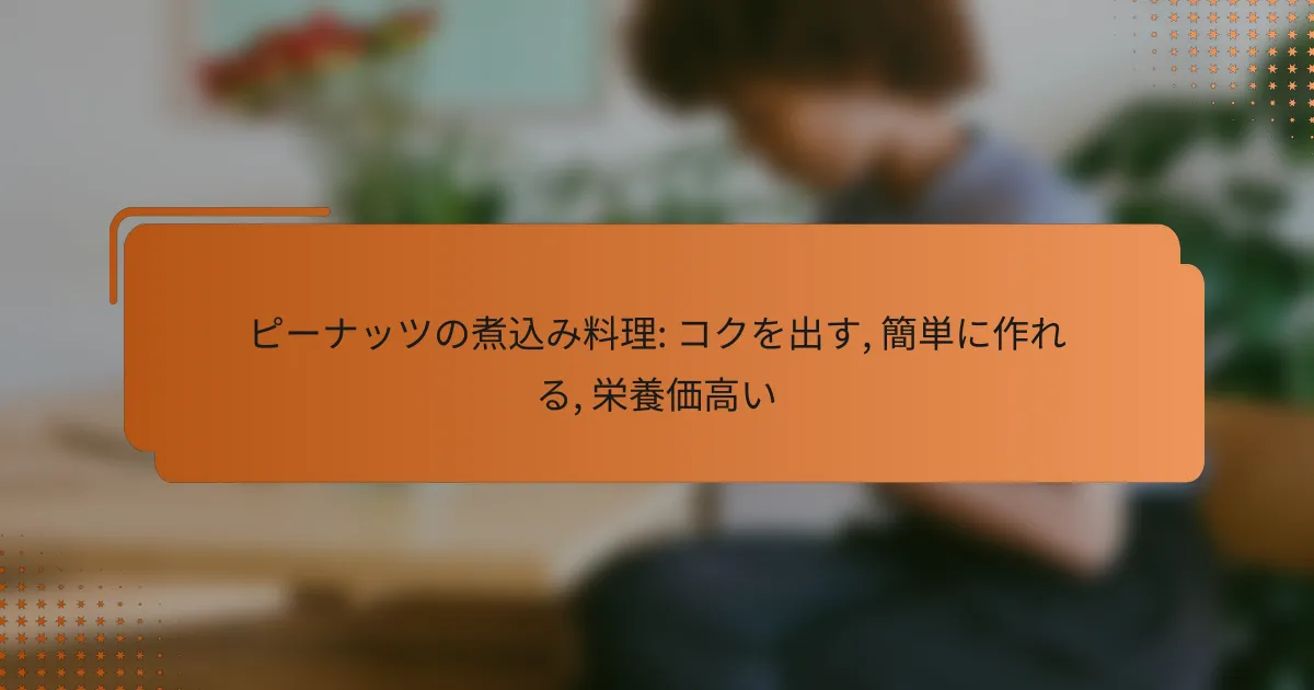 ピーナッツの煮込み料理にコクを出すためには、調味料やスパイスの選択、煮込み時間の調整、食材の組み合わせが重要です。これらの要素を工夫することで、深い味わいを引き出すことができます。