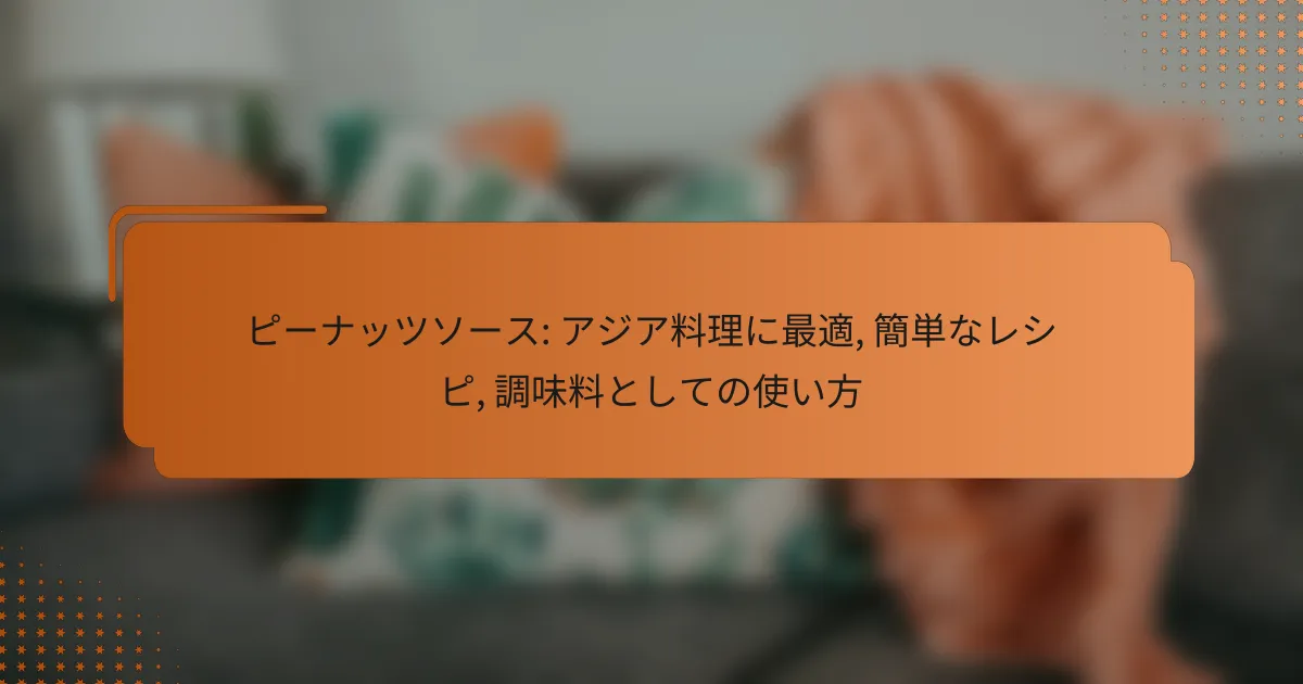 ピーナッツソースは、ピーナッツバターを基にした濃厚でクリーミーなソースで、アジア料理に最適です。基本的な材料を使って短時間で作ることができ、さまざまな料理にアレンジ可能です。