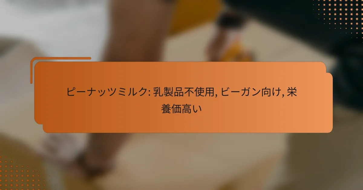 ピーナッツミルクは、乳製品を使用せずに作られた植物性の飲料で、ビーガンや乳糖不耐症の方に最適な選択肢です。栄養価が高く、心血管の健康をサポートする効果も期待できるため、健康志向の方々に人気があります。