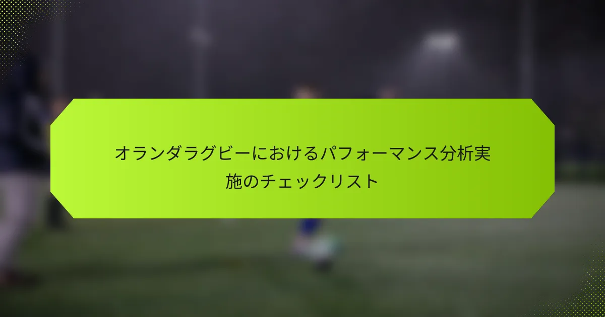 オランダのラグビーにおけるパフォーマンス分析の実施は、選手のパフォーマンスとチームの効果を大幅に向上させることができます。現在のデータ収集方法を体系的に評価し、主要なパフォーマンス指標に焦点を当てることで、チームは戦略的計画を推進し、ファンとの強い結びつきを育む貴重な洞察を得ることができます。