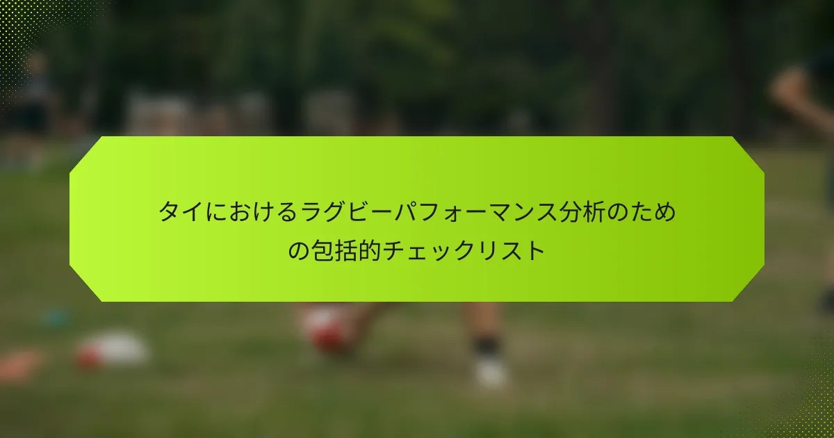 ラグビーのパフォーマンス分析は、選手の効果とチーム戦略を評価するために不可欠であり、特にタイの成長するラグビーシーンにおいて重要です。包括的なチェックリストを活用することで、コーチは選手の統計、身体的コンディショニング、チームダイナミクスなどのさまざまな要素を体系的に評価できます。この構造化されたアプローチを現代の技術と組み合わせることで、トレーニングと試合のパフォーマンスを向上させるための情報に基づいた意思決定が可能になります。