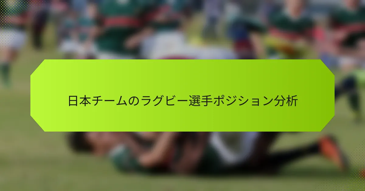 日本のチームにおけるラグビーの主要な選手ポジションには、フォワードとバックスが含まれ、それぞれ異なる役割と責任があります。これらのポジションを理解することは、チームのダイナミクスや試合でのパフォーマンスを分析するために不可欠です。